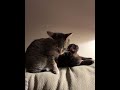 Jett is a lively kitten with a plan for greatness! His hobbies include a turboscratcher, vanquishing little stuffed mousies, and assisting his human minions in any way possible. He enjoys a nice cuddle with his people, and considers Grey's Anatomy to be the epitome of literary and educational entertainment. He gets along well with his human's adult cats, mostly by ignoring them. He and his bff, Jem, have quite different personalities but he thinks that's what makes a good relationship work. He dines on Proplan kitten canned food and Purina kitten chow.